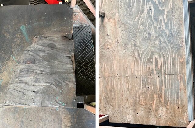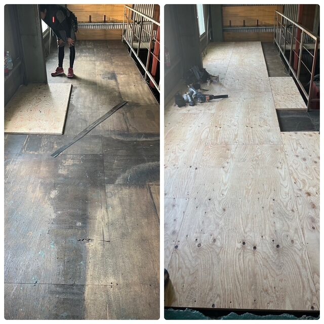 8月の終わりに、第一工場の二階ロッカー置き場(だった所)の床の張替えを行いました。